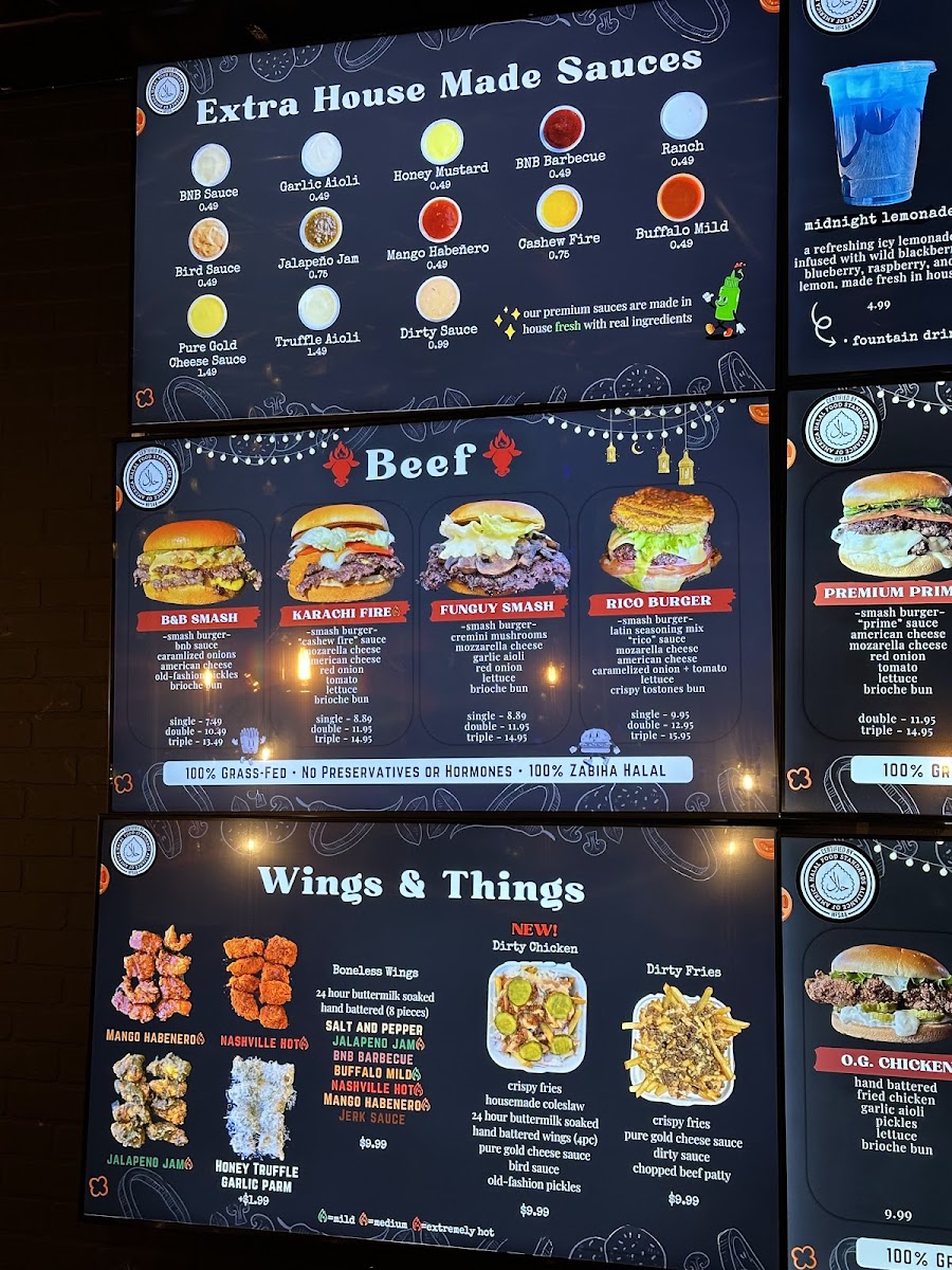 Beef N' Buns in Orlando offers a mouthwatering selection of handcrafted burgers, perfectly balancing fresh ingredients with bold flavors. The menu highlights include the signature B&B Smash, available in single or double patties, layered with American cheese, caramelized onions, and their special BNB burger sauce, all nestled in a toasted brioche bun. For those craving a unique twist, the Karachi Fire Double Smashed Patty delivers a rich, flavorful experience without overwhelming heat.